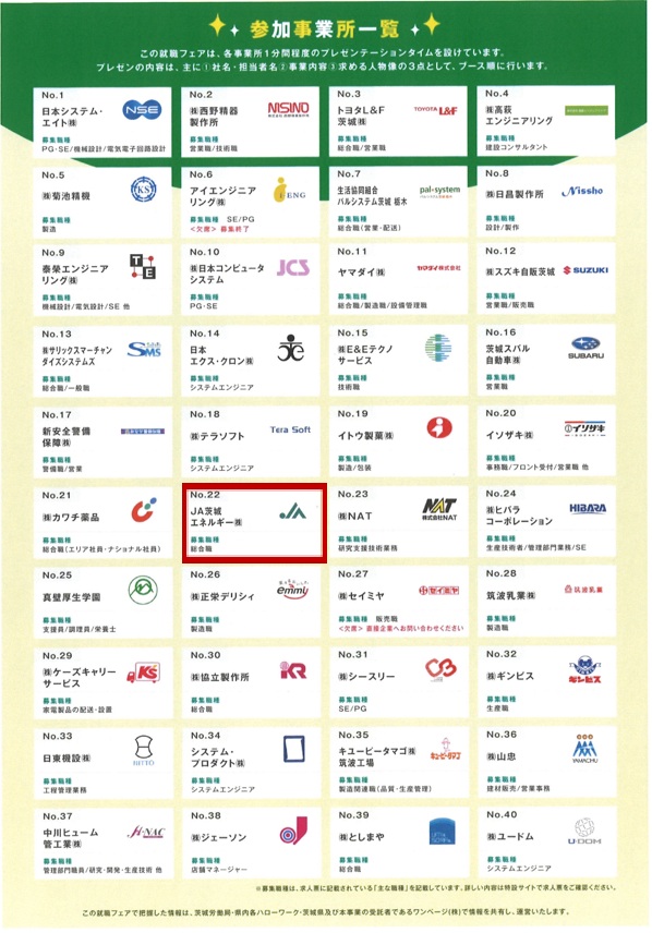 令和7年12月6日(土)のチャレンジいばらき就職フェア(後期:第2弾)にJA茨城エネルギー(株)も参加致します。