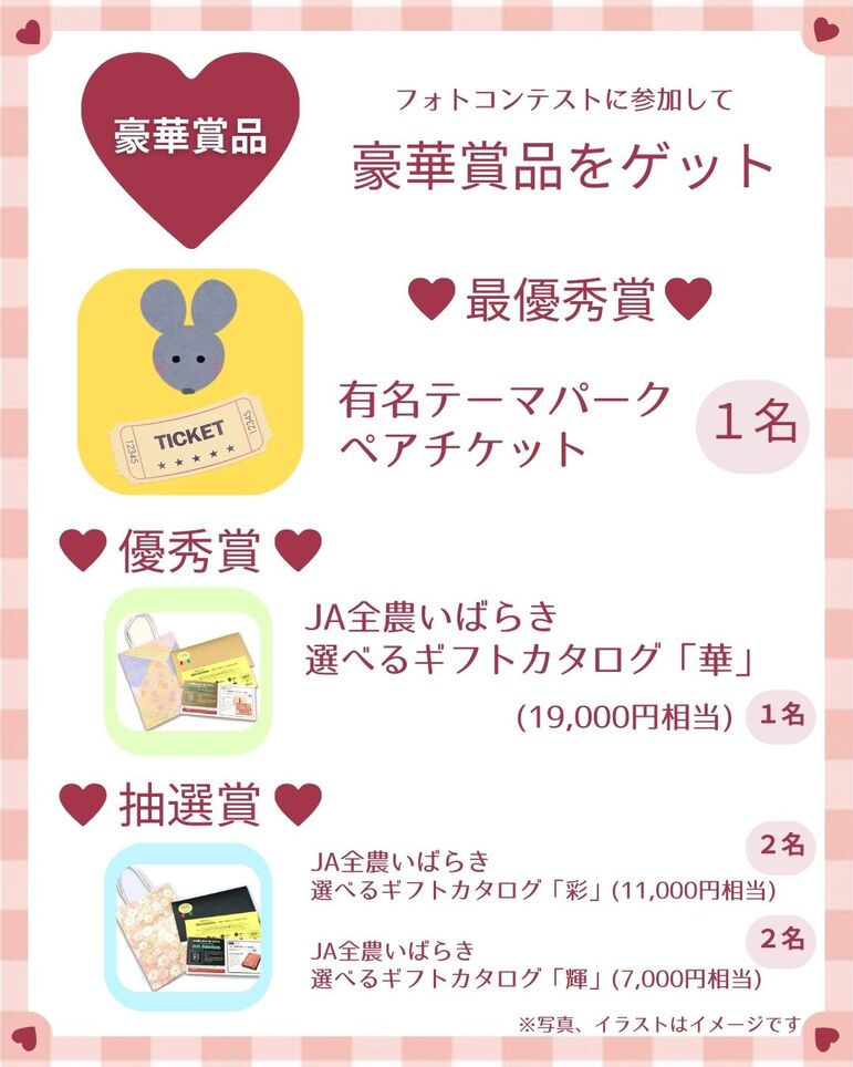 優 秀 賞:JA全農いばらき 選べるギフトカタログ(華)19,000円相当 1名様
