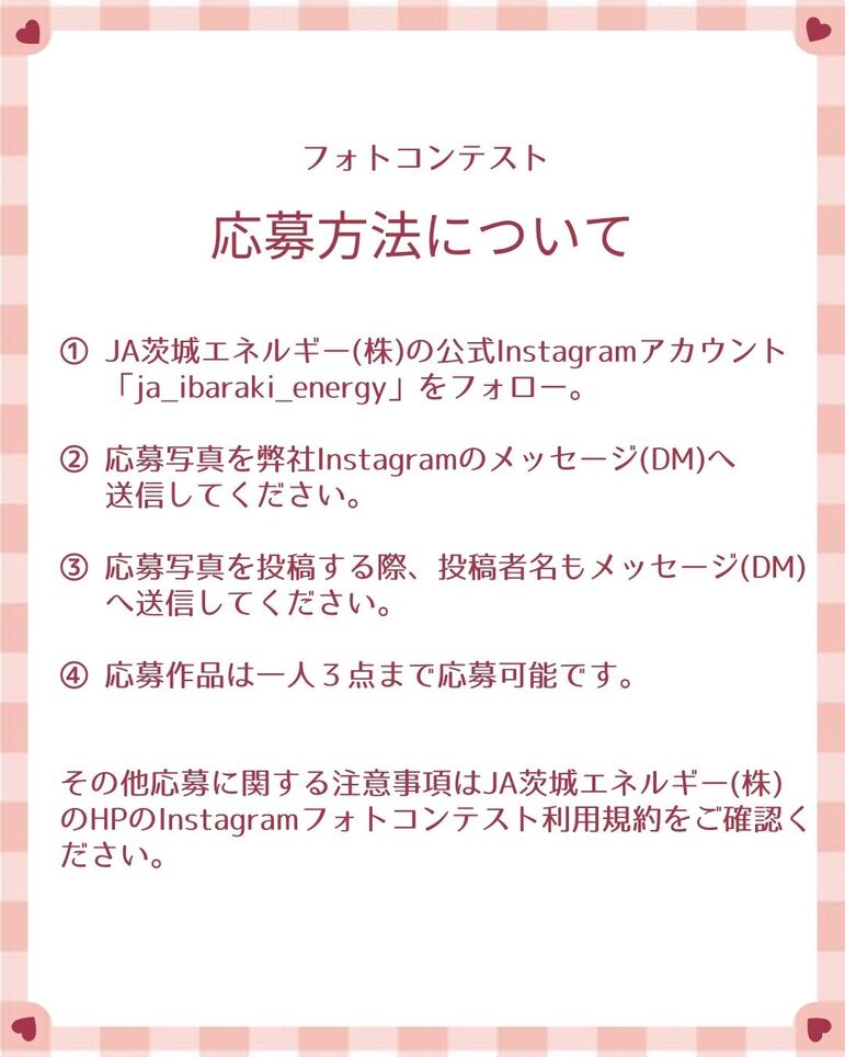 ※本コンテストについての規約はJA茨城エネルギー㈱ホームページに記載しております。プロフィール欄のリンクからご覧いただけます。必ずご確認の上、ご応募ください。